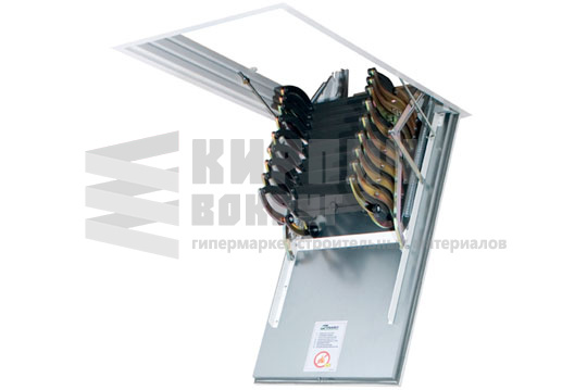 Чердачная лестница FAKRO LSF – огнестойкая металлическая конструкция, изготовленная из оцинкованной стали. Модель обладает высокими показателями огнестойкости (15 мин.) По периметру крышки люка (толщина крышки с утеплителем 55 см), изготовленного из огнеупорного несгораемого материала, установлен контур уплотнения, который, расширяясь под влиянием высокой температуры, ограничивает проникновение дыма. Все материалы, используемые при производстве лестницы, прошли испытания на огнестойкость и соответствуют всем европейским нормам.